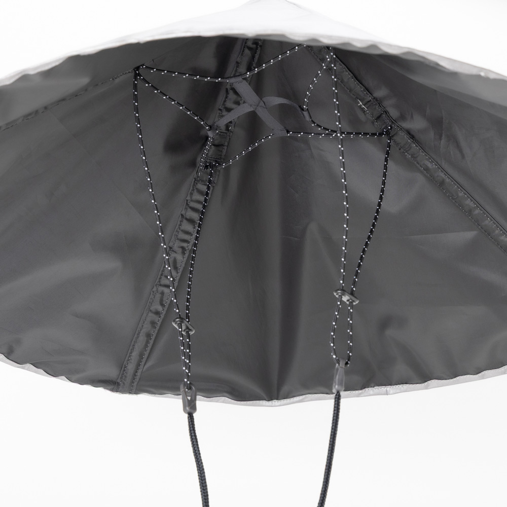 笠をモチーフにしたユニークなデザインの日除けハットです。シルバーカラーコーティングを施した晴雨兼用の生地が日差しを反射し、最高レベルの紫外線保護指数(UPF50+)を実現。優れた遮熱効果で、強い日差しから肌を守ります。簡単に折りたたむことができ、瞬時に元の形状に広がるポップアップ仕様です。天頂部に空間があるので蒸れにくく、風が吹いても飛ばされにくいあごひも付きです。型くずれを防ぐ芯材入り。
