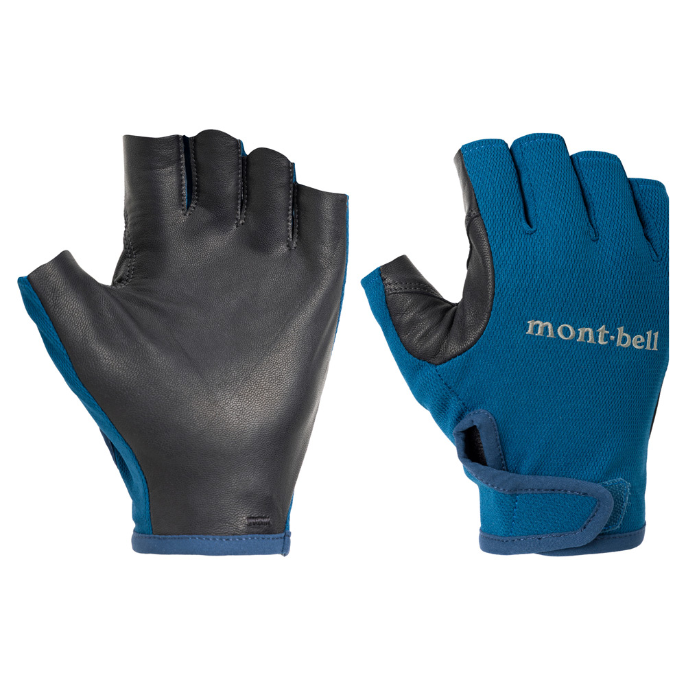 「トレッキンググローブ」のフィンガーレスモデルです。指切りの長さを、指先だけが露出する長さに設定し、指先の感覚と手のひらの保護を両立しました。中指と薬指のタブをつまんでスムーズに脱着が行えます。縫い目の少ない手のひらにはしなやかさと耐久性を両立したやぎ革を使用。ポールなどの操作感に優れ、鎖場や岩稜地帯でもしっかりと手を保護します。甲側には吸水拡散性、通気性に優れた素材を使用し、蒸れにくく快適な着用感です。丸洗いすることができ、メンテナンスも容易です。