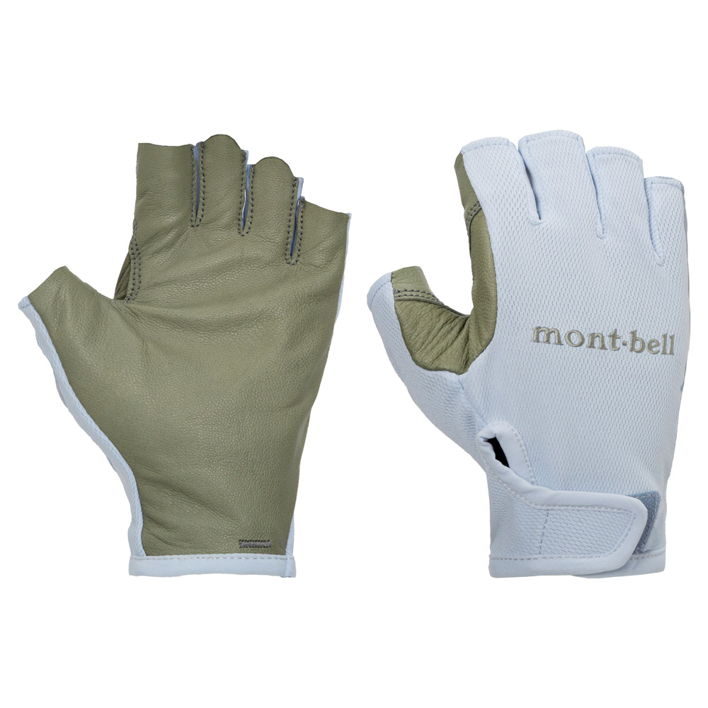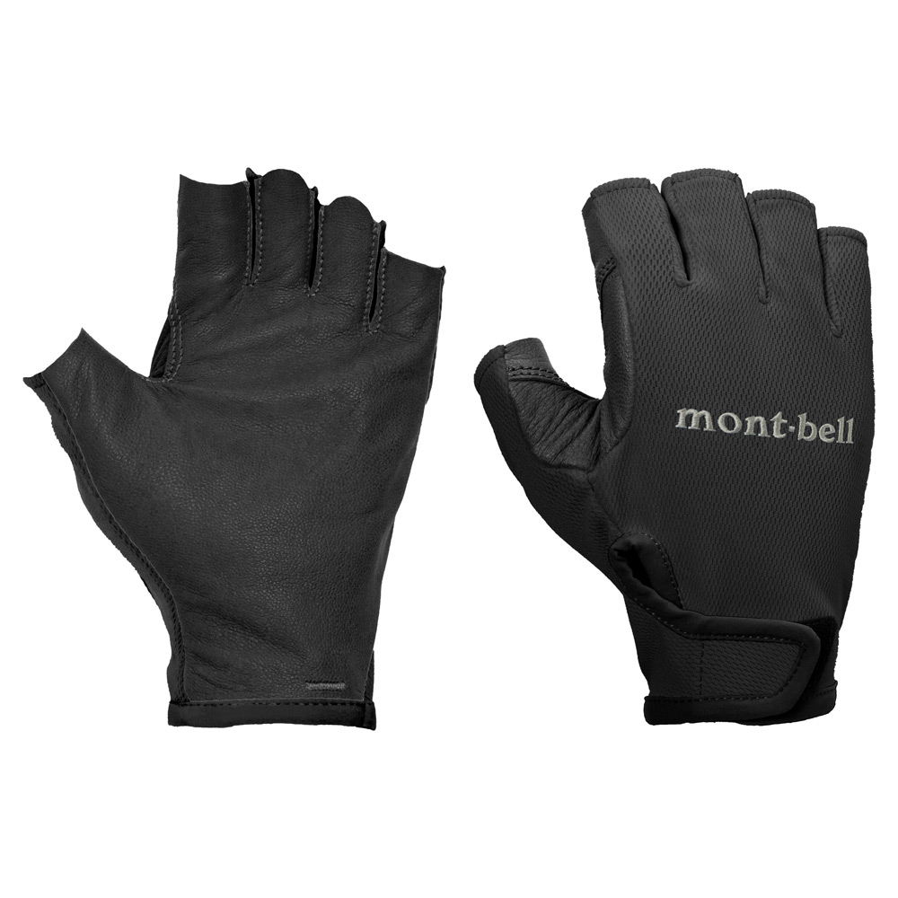 「トレッキンググローブ」のフィンガーレスモデルです。指切りの長さを、指先だけが露出する長さに設定し、指先の感覚と手のひらの保護を両立しました。中指と薬指のタブをつまんでスムーズに脱着が行えます。縫い目の少ない手のひらにはしなやかさと耐久性を両立したやぎ革を使用。ポールなどの操作感に優れ、鎖場や岩稜地帯でもしっかりと手を保護します。甲側には吸水拡散性、通気性に優れた素材を使用し、蒸れにくく快適な着用感です。丸洗いすることができ、メンテナンスも容易です。