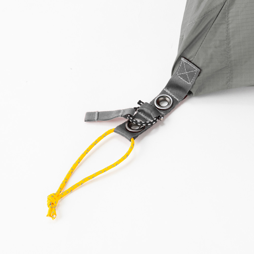 ステラリッジ テントの防寒防風性を高め、積雪期での使用に対応するためのスノーフライです。耐候性の高い生地を使用し、天井や四隅には補強を施すことで耐久性を高めています。出入口は筒状の吹き流しタイプで、巾着のように口をひもで絞って開閉を行うため、凍結による破損の恐れが少なく、降雪時にも出入りしやすくなっています。スタッフバッグ付き。