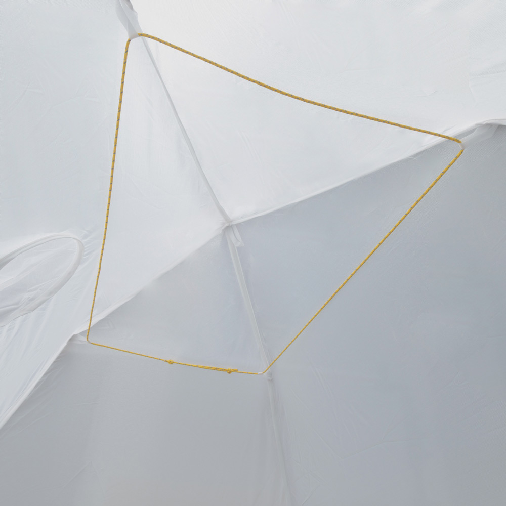 ステラリッジ テントの防寒防風性を高め、積雪期での使用に対応するためのスノーフライです。耐候性の高い生地を使用し、天井や四隅には補強を施すことで耐久性を高めています。出入口は筒状の吹き流しタイプで、巾着のように口をひもで絞って開閉を行うため、凍結による破損の恐れが少なく、降雪時にも出入りしやすくなっています。スタッフバッグ付き。