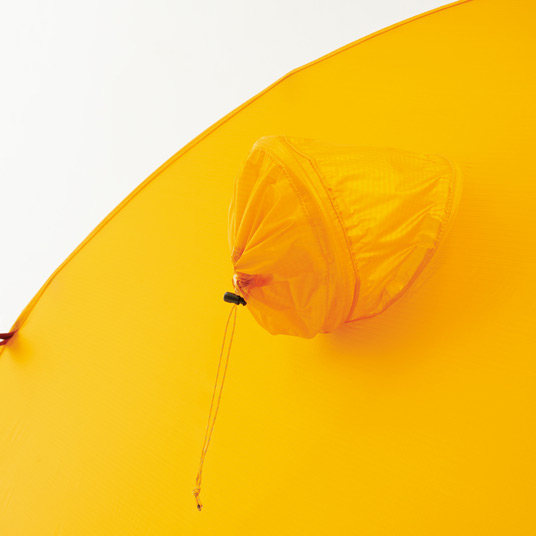 【レインフライ】一般的な素材に比べて軽量で極めて保水しにくいナイロンを使用。保水による生地の垂れ下がりが少なく、本体との間にクリアランスを確保。レインフライ裏に発生する結露による浸水を防ぎます。