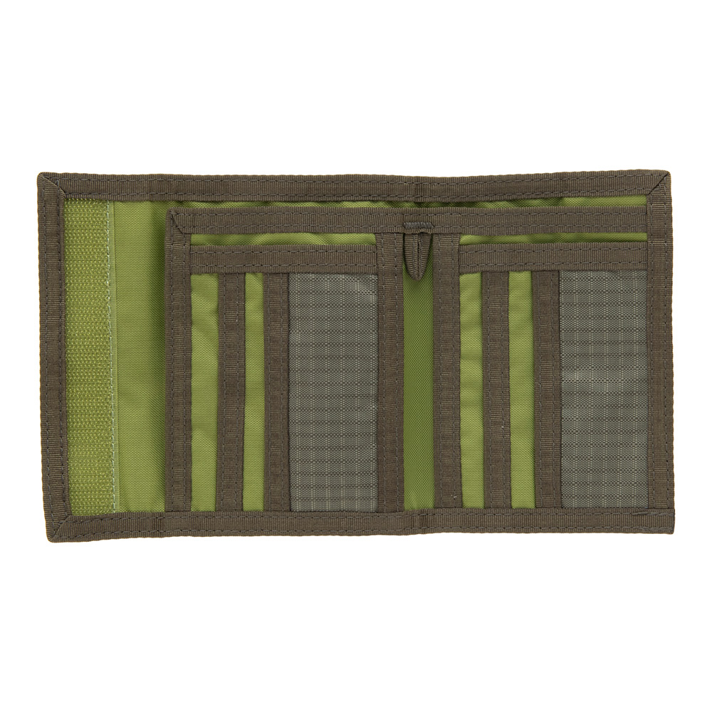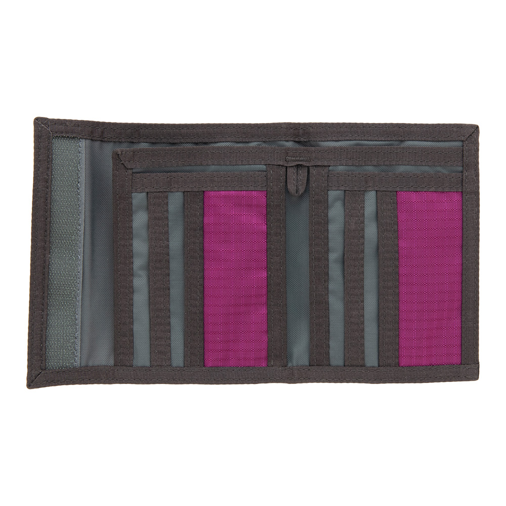 札入れを2ヶ所備え、カード入れも豊富。背面にコインポケットを設けています。ストラップなどを装着できるループ付き。