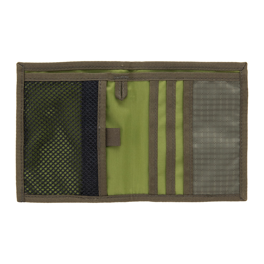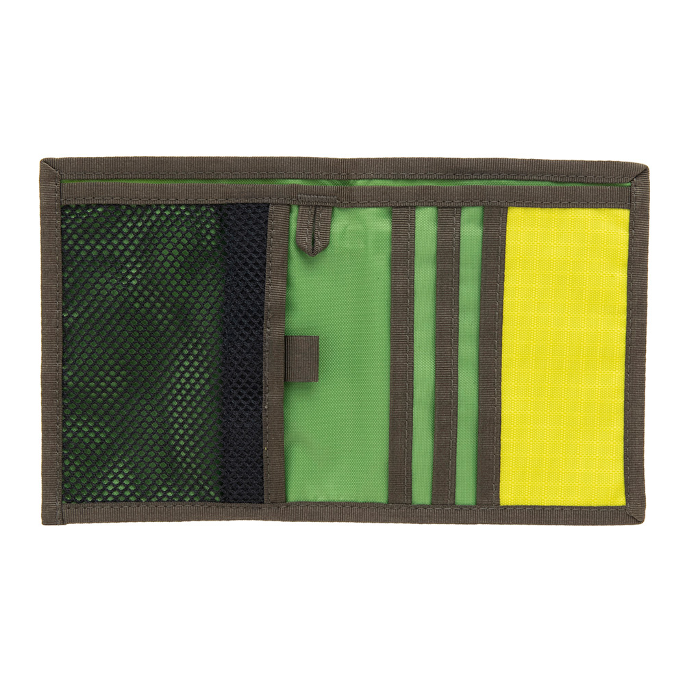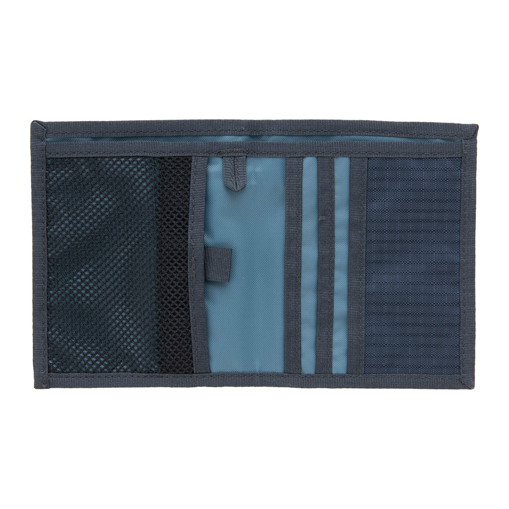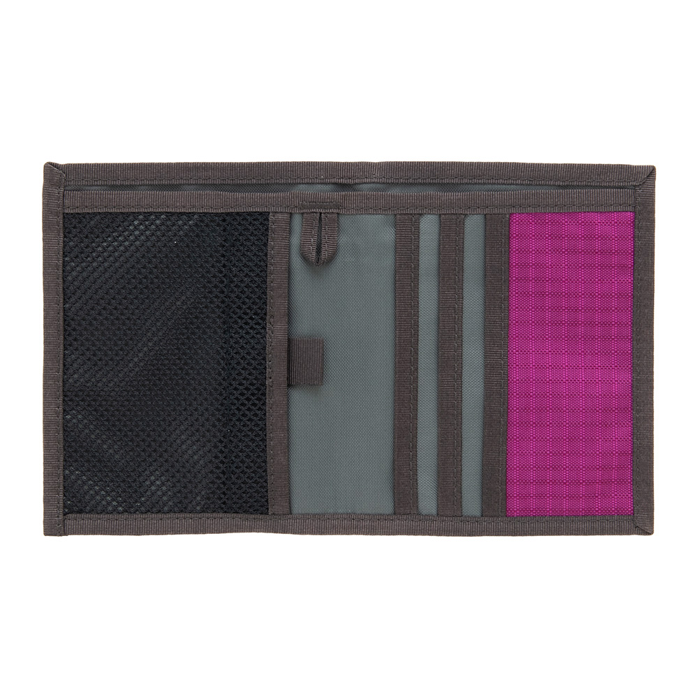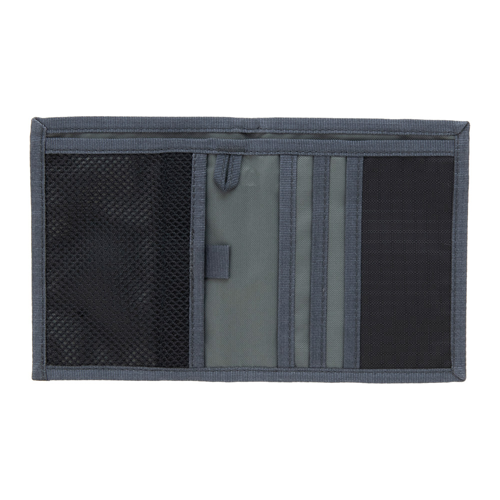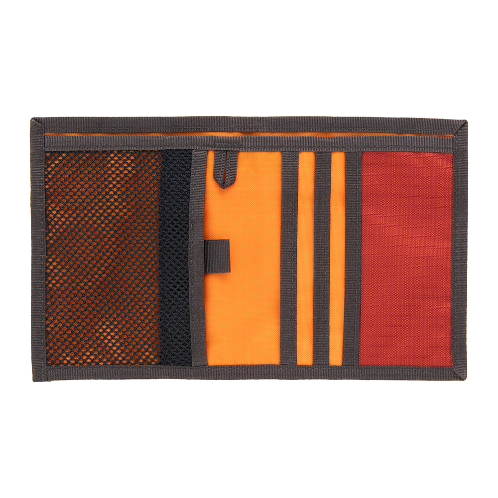 ヒップポケットにも入れやすいスリム設計。中身が確認しやすいメッシュ地のコインポケットを設けています。ストラップなどを装着できるループ付き。