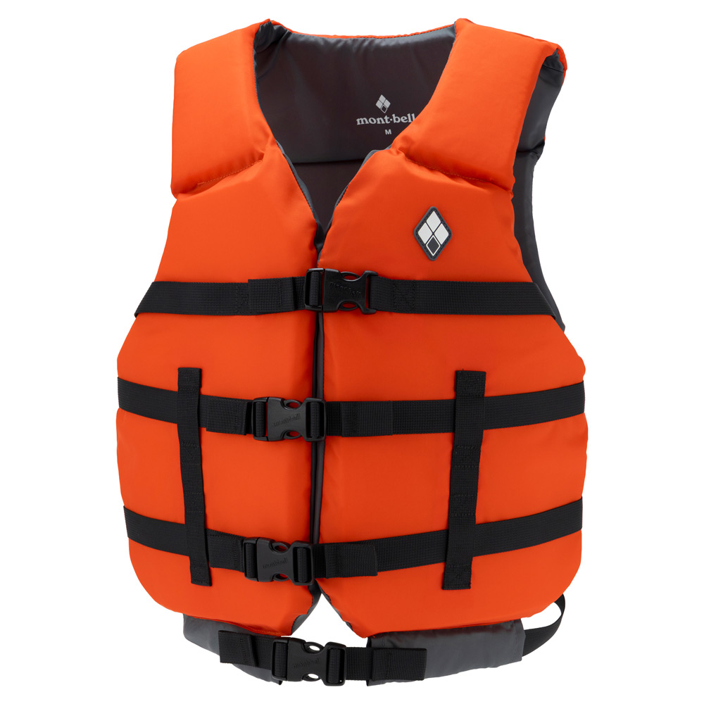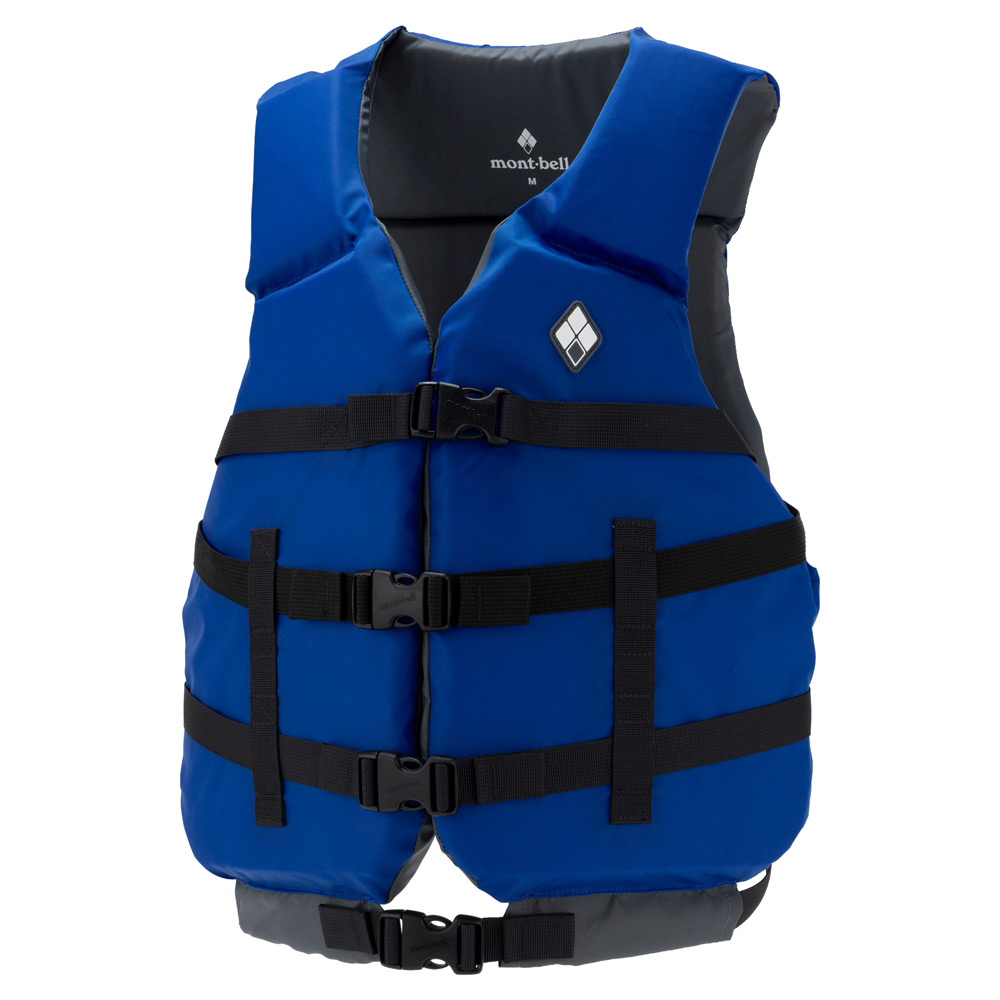 モンベルのライフジャケットは、カヤックやカヌー、ラフティング用に開発されたベストであり、海難救助用の救命胴衣とは規定・使用目的が異なります。ご留意の上、添付の説明書をよく読んでご使用ください。