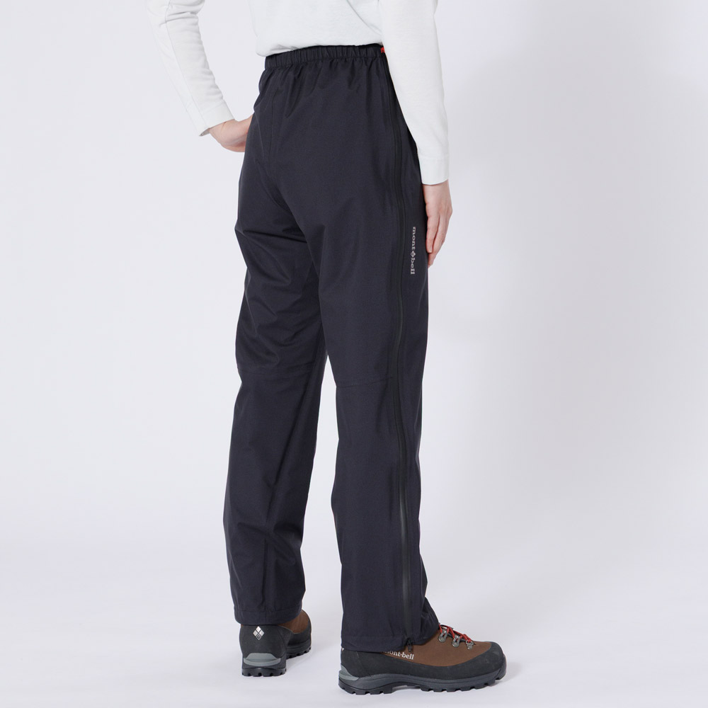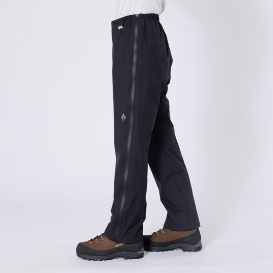 スーパー ドライテック®レインパンツに全開するサイドジッパーを備えたモデル。登山靴を履いたままでも着脱が容易で、急な雨にもすばやく対応できます。裏地には保水しにくい高密度ニットを使用し、さらっとした履き心地です。