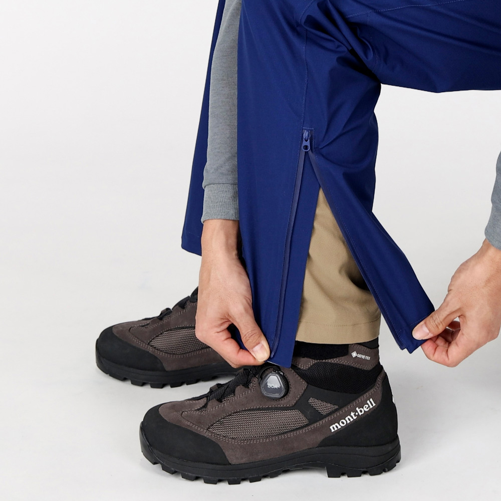 【特長】アクアテクト®ジッパー(サイド) / はっ水ジッパー(フロント) / ボトムジッパー(靴を履いたままパンツの着脱はできません) / サムエシステム / 立体裁断(膝) / 裾内側の摩耗強度を向上 / フロントジッパー付き / ネームタグ付き / スタッフバッグ付き