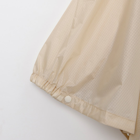 【特長】車のライトなどを反射して光るテープ(背面) / アクアテクト®ジッパー / フードはゴムでフィット / フードのひさしは芯入りで雨を効果的に遮るバードビルデザイン / 袖口はゴムとホックでフィット / 丈を調節できるスナップボタン / スタッフバッグ付き / ネームタグ付き