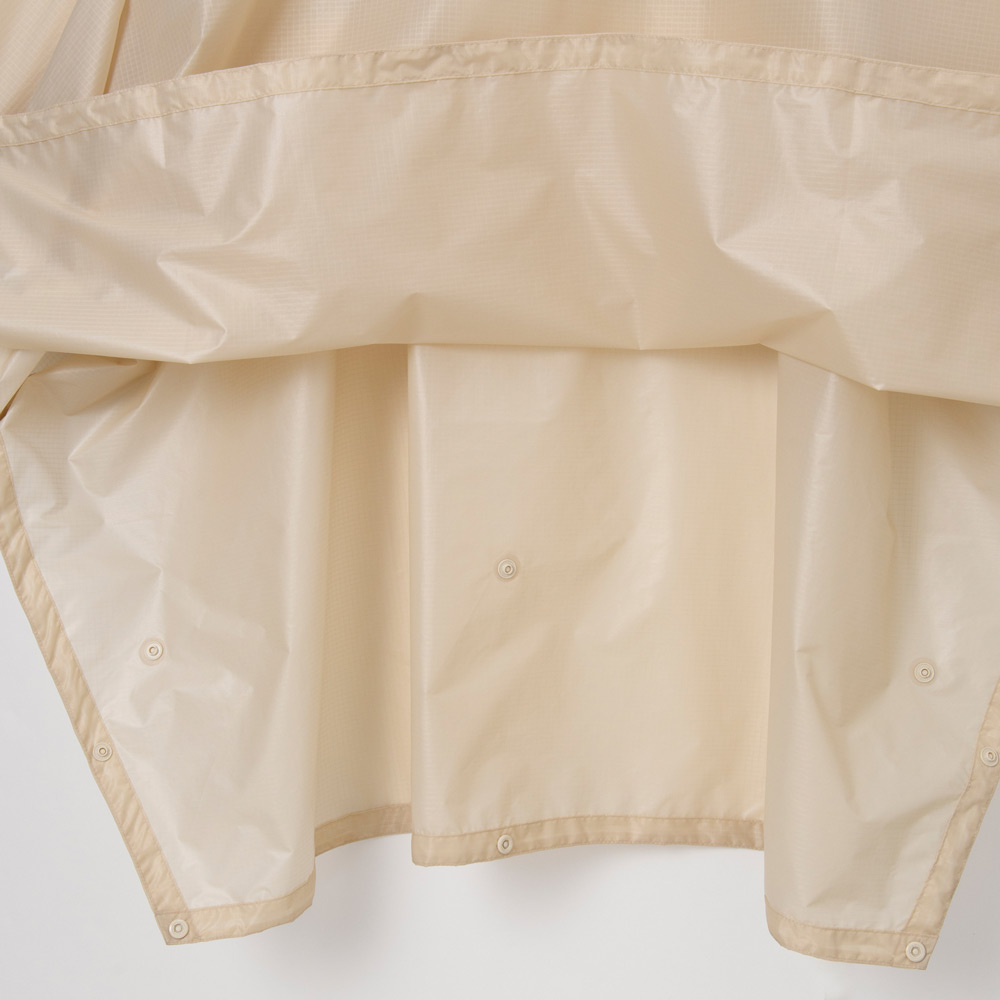 デイパックやランドセルごとすっぽりとかぶることができるポンチョです。独自の高耐水圧素材ハイドロプロ® 2レイヤーを使用。成長に合わせたフィッティングを行えるよう、すそ部分には丈の長さを調節できるホックを設けています。ホックとゴムで袖口を作り手が隠れない仕様や背面に反射テープを配するなど、操作性や安全面に配慮した機能が充実。軽量・コンパクトに収納できるので、ハイキングや通学への携行にも大変便利です。