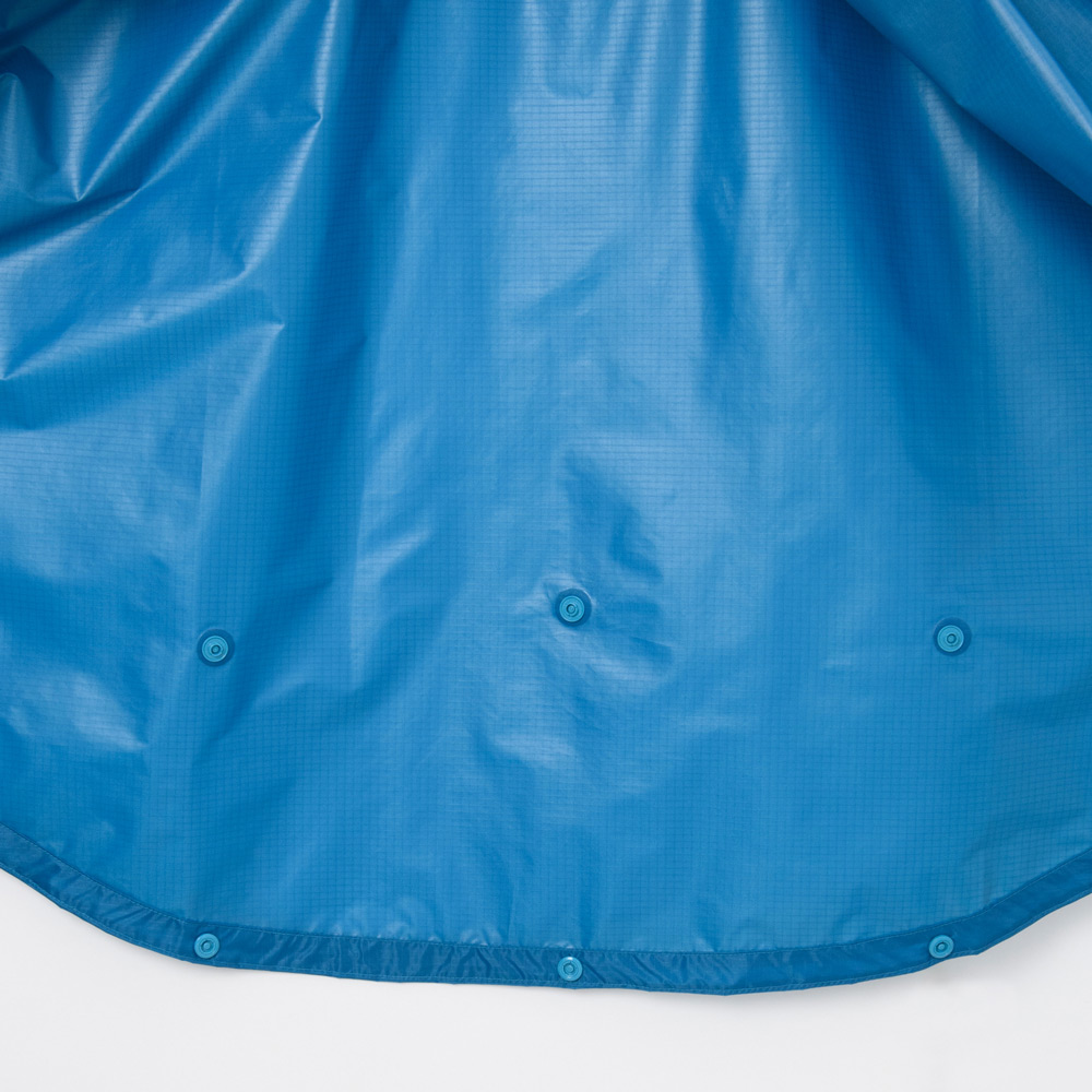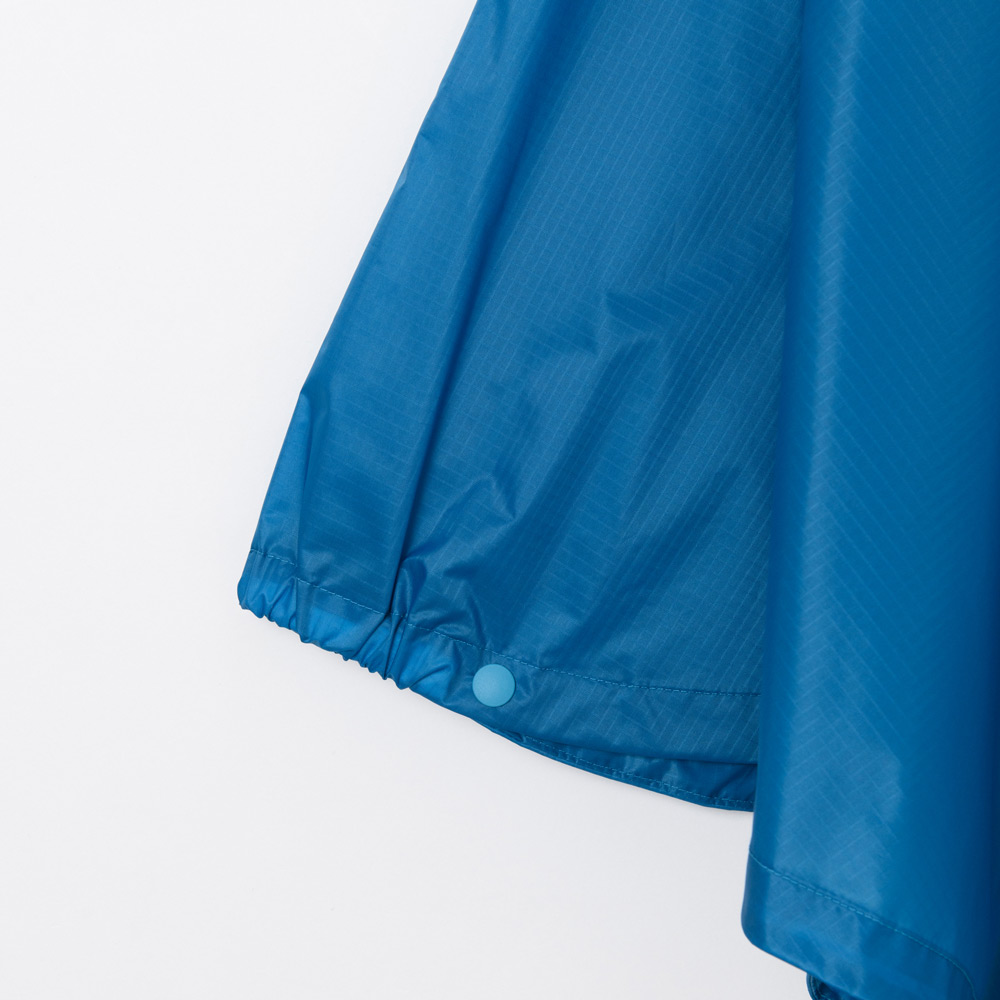 デイパックやランドセルごとすっぽりとかぶることができるポンチョです。独自の高耐水圧素材ハイドロプロ® 2レイヤーを使用。成長に合わせたフィッティングを行えるよう、すそ部分には丈の長さを調節できるホックを設けています。ホックとゴムで袖口を作り手が隠れない仕様や背面に反射テープを配するなど、操作性や安全面に配慮した機能が充実。軽量・コンパクトに収納できるので、ハイキングや通学への携行にも大変便利です。