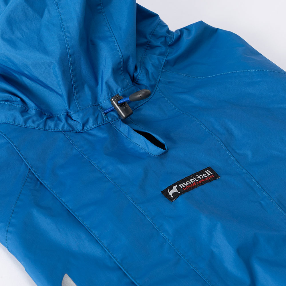 雨や泥から愛犬を守る、全身を覆うレインウエアです。首回りはドローコードで調節できます。オスでも用足しが行えるよう下腹部から尻尾にかけては生地が開いた状態になっています。背面の首元にリーシュを通せる穴があるため、カラー(首輪)の上から着用できます。夜間のお散歩でも安全な反射マーク付き。