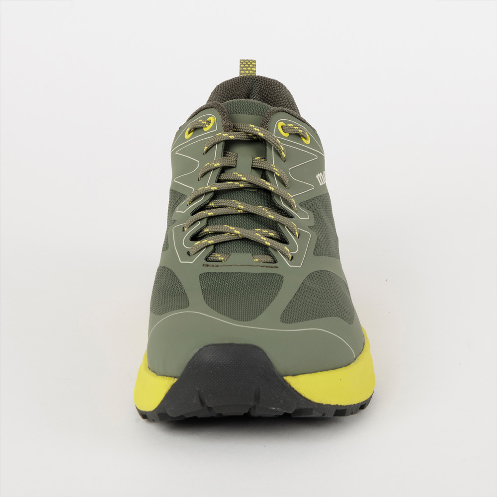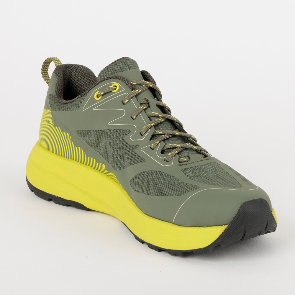 トレイルランニングに適した軽量シューズです。アッパーには通気性に優れたメッシュ素材を使用し、部分的にポリウレタンで補強し、しなやかさを失わずに保護力を高めています。ミッドソールには軽量でクッション性に優れた素材を使用。グリップ力に優れた独自パターンのアウトソールが軽快なランニングをサポートします。足囲が大きい方に適したワイドモデルです。