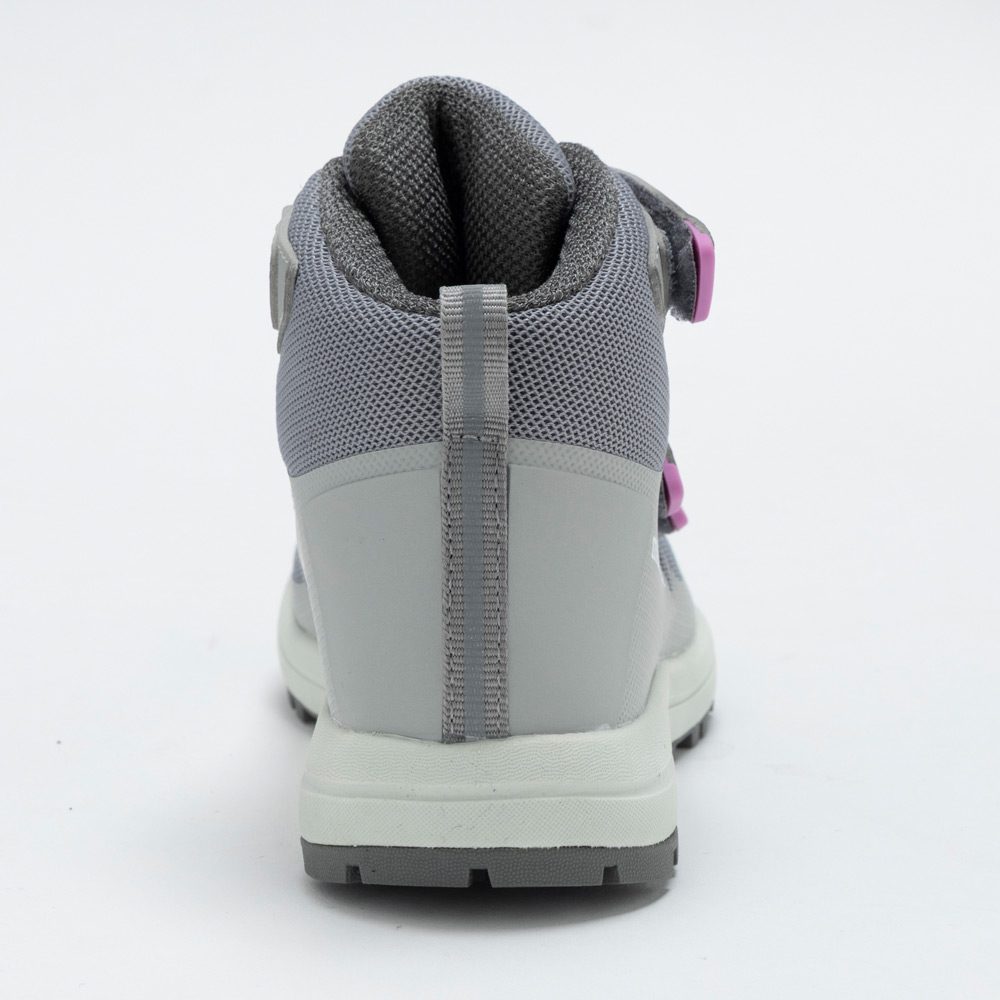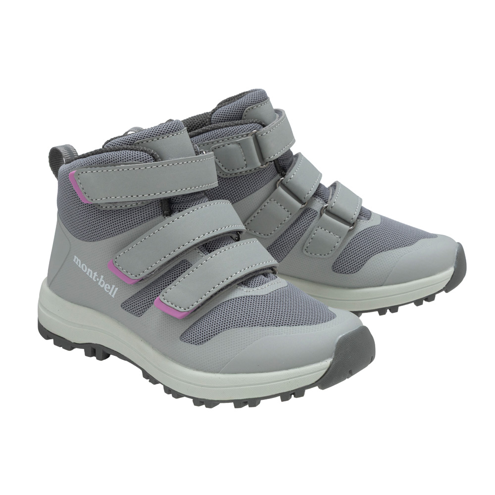 ハイキングや林間学校に適した子ども用ブーツです。全面に通気性に優れたメッシュ素材を使用し、部分的に補強を施しています。柔らかな履き心地で、足全体を優しく包み込みます。独自開発の子ども用ラストによりフィット感を高め、グリップ力の良い独自パターンのアウトソールを搭載し、快適な歩行をサポートします。かかとには夜間の視認性を高める反射テープ付き。小さな子どもでも脱ぎ履きしやすいベルクロタイプです。