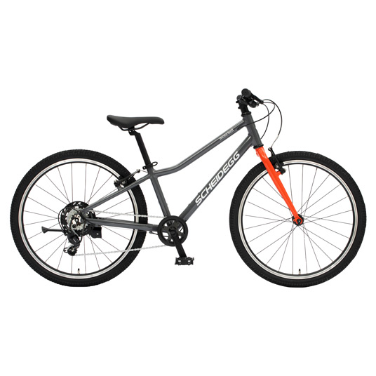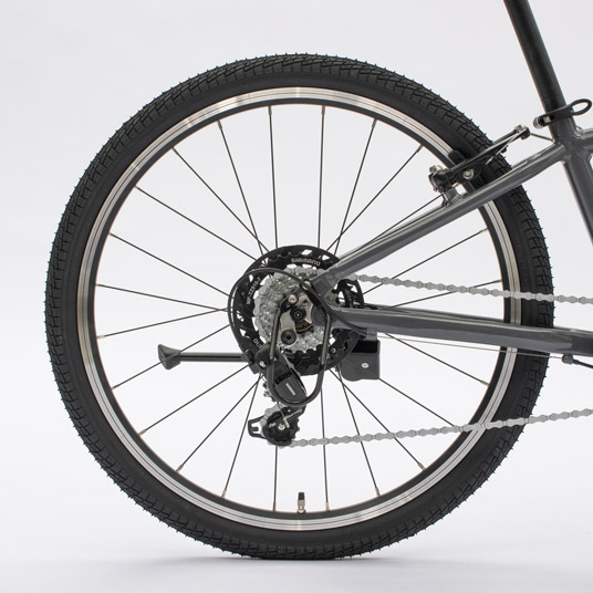 軽量なアルミフレームとパーツを使用することで、子どもが扱いやすい重量を実現したスポーツタイプの自転車。7段変速の変速機を使用し、坂道も軽い力で走行できます。トップチューブを曲げることでまたぎやすく、足がつきやすくなっています。太めのタイヤを装着し、荒れた道路でも安定感を得られます。広い踏み面のペダルを使用し、効率のよいペダリングが可能。短めのクランクで、こぎ出し時にふらつきにくくなっています。錆びにくい加工をした耐久性のあるチェーンを装備し、長期間快適に乗ることができます。ケーブルがフレームの中に内装されていて、すっきりとしたデザインです。転倒時、変速機を守るディレーラーガード付き。