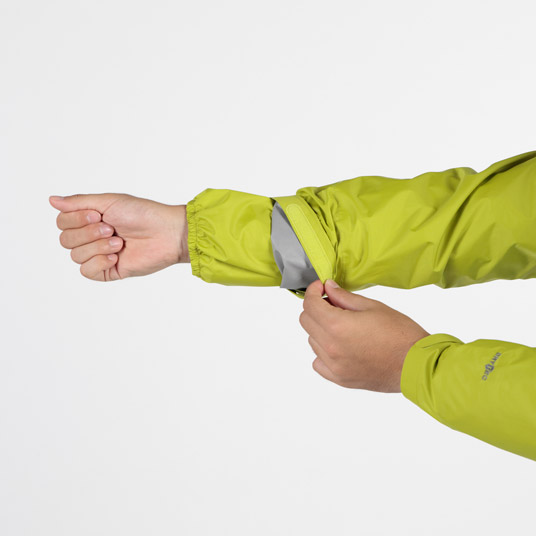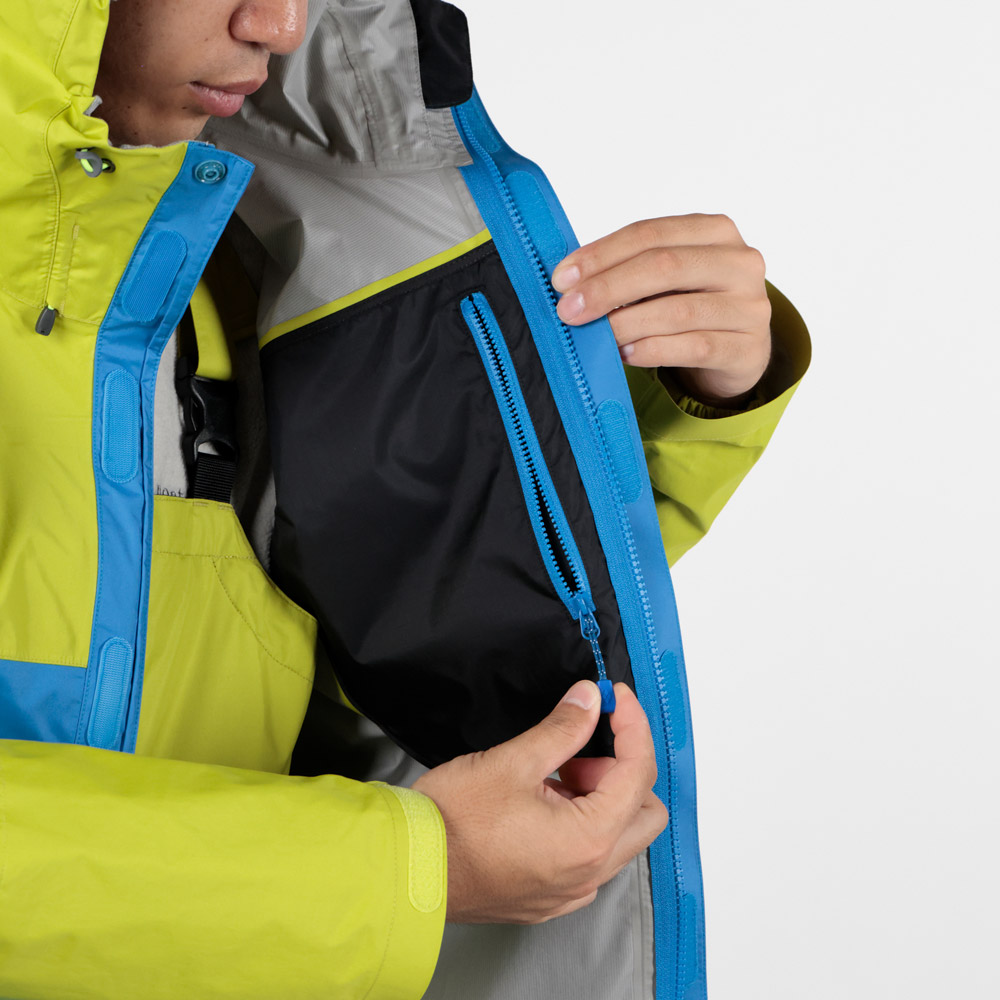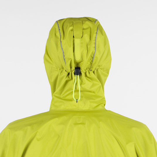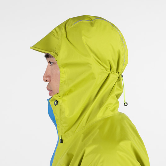 【特長】トライアクスルフード / ロールアップフード / 運動性を高める独自のパターン / リードインコード・システム(すそ) / スタッフバッグ付き
