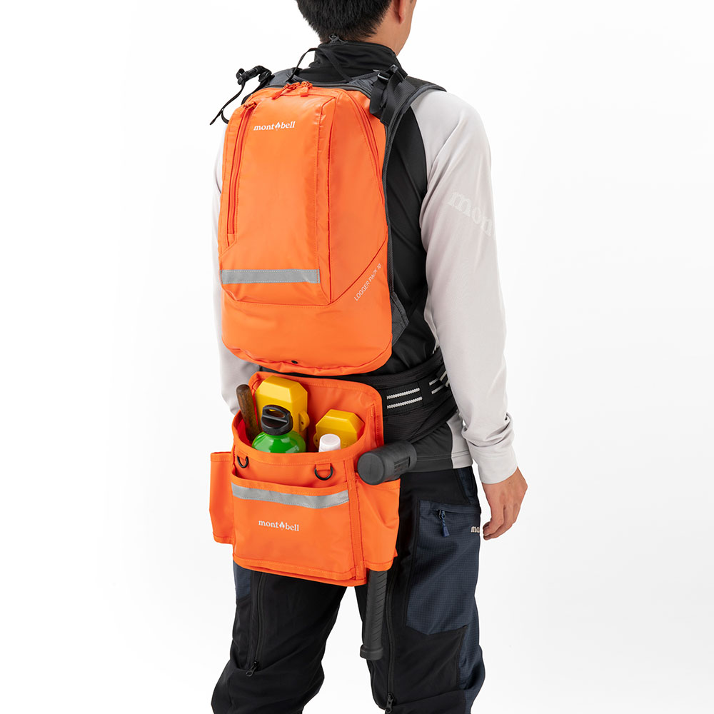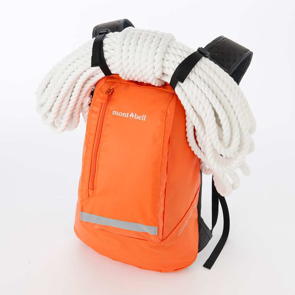 3つの気室を備え、林業機械用の工具や燃料ボトルなどを効率よく収納できる視認性の高い配色のバックパックです。耐油性に優れるターポリンの生地を使用しています。バックパネルは木くずが入り込みにくい仕様で、ショルダーハーネスは肉抜きがされており通気性に優れています。チェストストラップのバックルはホイッスル付き。作業の妨げにならない細身で、下部の厚みと丈を抑えたシルエットにより、別売の「ロガー ツールベルト」・「ロガー ツールバッグ」・「ロガー フラップ ツールバッグ」と併用した際にも干渉しにくくなっています。