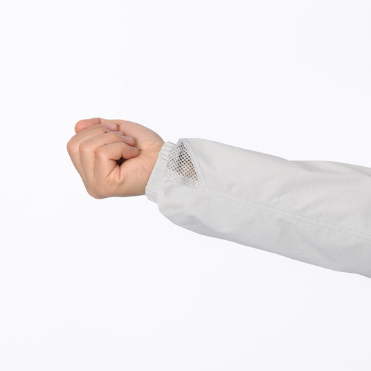 裾と肩口はゴムでフィット感を高めて空気の流出を防ぐことで、ウエア内の空気の循環効率を高めています。