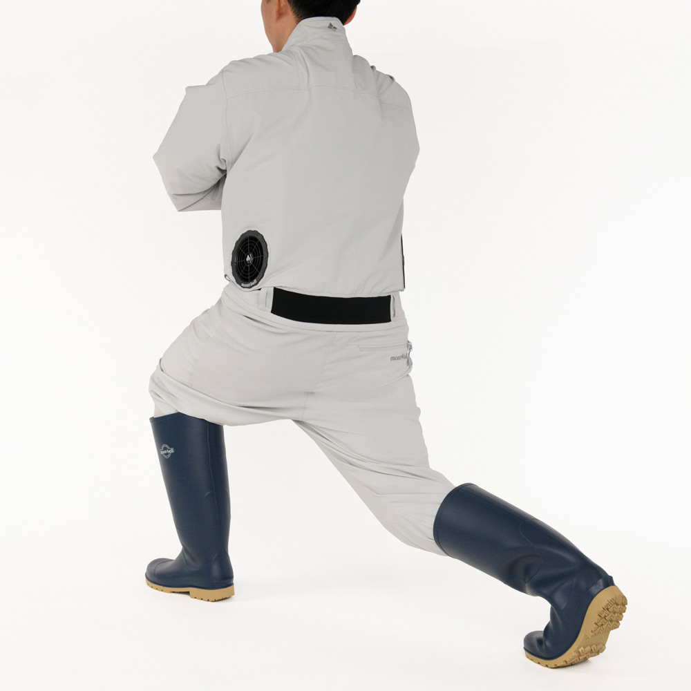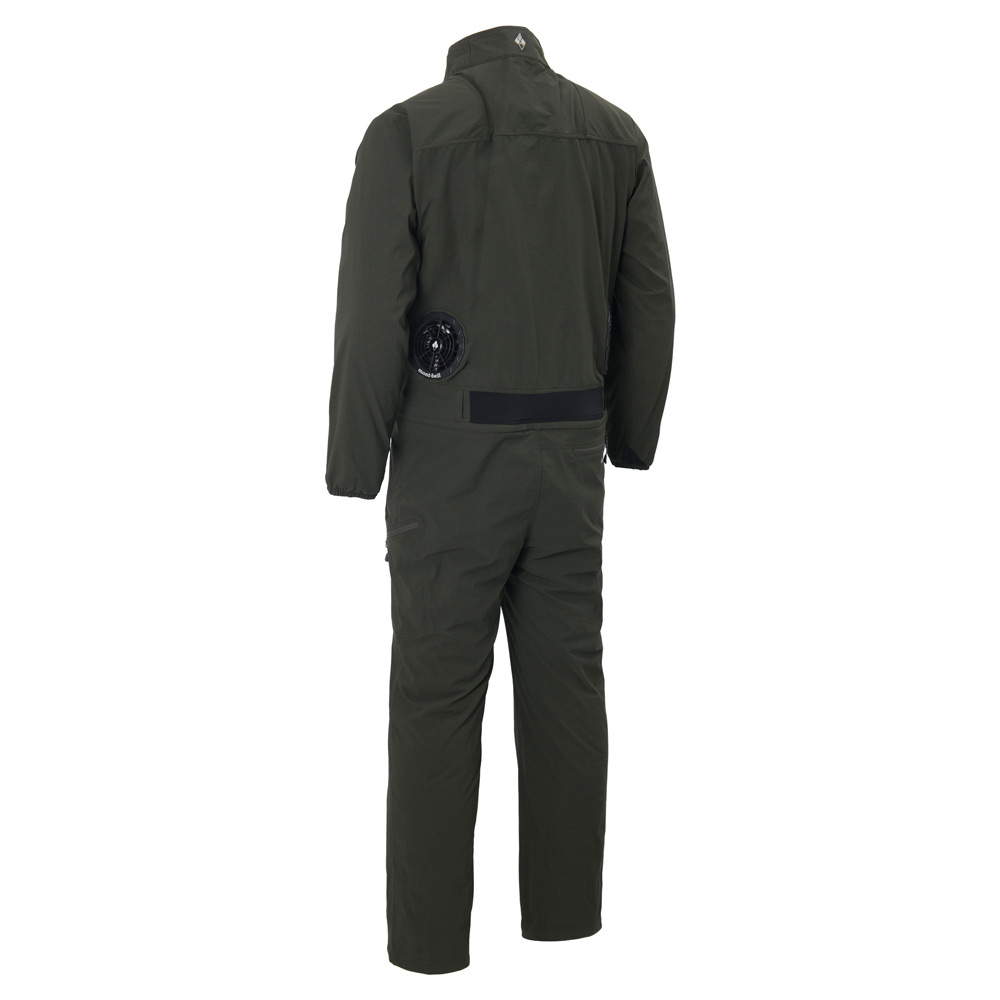 暑い時季の農作業などで活躍する専用のファンとバッテリーが取り付けられるカバーオールです。ファンから取り込まれた空気が襟の後ろと脇、袖口、裾から効率よく通り抜ける構造で、汗の気化を促進し、快適に過ごすことができます。ファンを使用しないときには取り付け穴にベルクロで装着できるカバーが付属します。伸縮性に優れ、つっぱり感のない着心地を実現。農機具などへの巻き込みやひっかかりの危険性を低減しています。乾きやすく、手軽に洗濯できます。