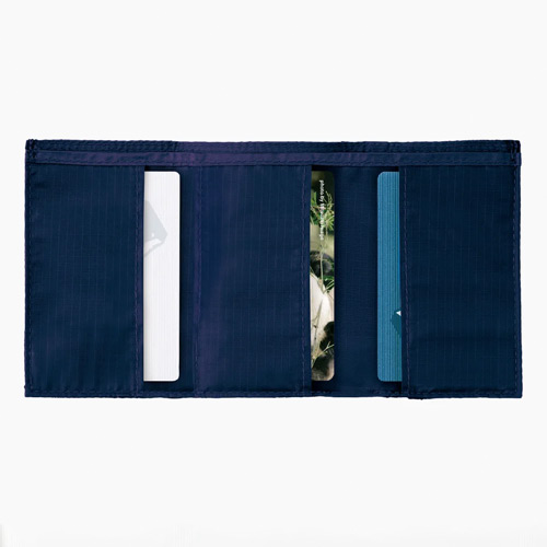 軽量・コンパクトながら優れた収納力と耐久性を持つ三つ折りワレットです。紙幣と硬貨、カードを機能的に収納でき、少しでも荷物をコンパクトにしたいアウトドアアクティビティの際に適しています。