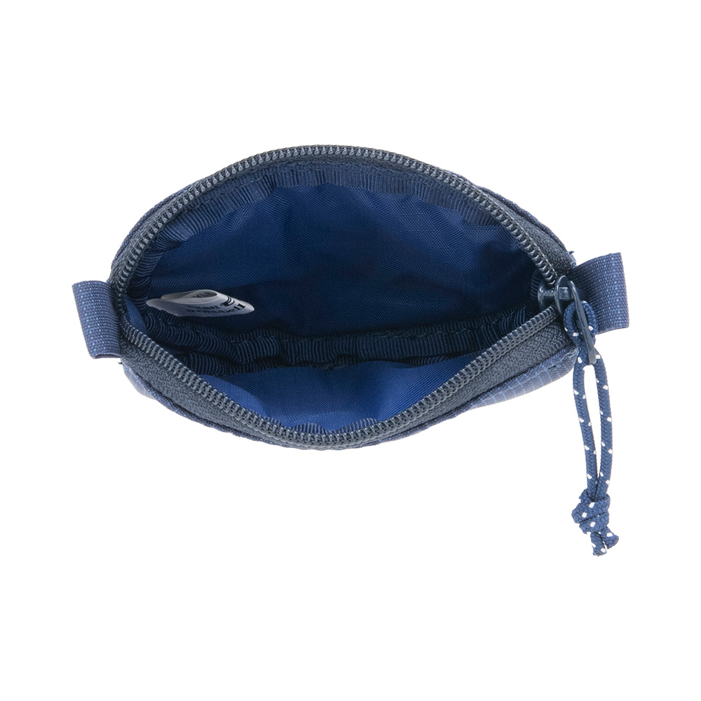 手のひらサイズの小銭入れです。ジッパーにそってナイロンテープで芯を作っているので、上下につまむと入口が大きく開き、中身の小銭が見やすく、取り出しやすいです。