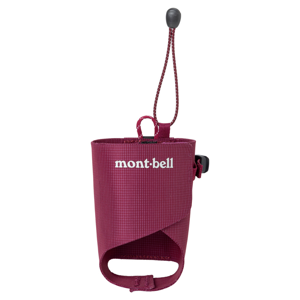 バックパックやウエストバッグに簡単に装着できる、軽量コンパクトなボトルホルダーです。ストラップを外すと、ベルトにも取り付け可能です。350mLから700mLくらいまでのボトルに対応します。揺れや衝撃によるボトルの脱落を防止するコード付きです。カラビナやリーシュをつけるループを背面上部につけています。
