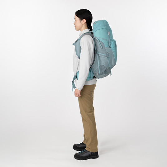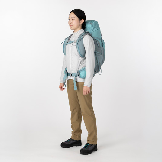 大小さまざまなポケットや本体下部へのアクセスジッパーを装備し、収納力に優れる中型パックの女性用モデルです。ショルダーハーネスの取付位置を変えることで背面寸法を調節し、体格に合わせて簡単にフィッティングすることが可能です。日帰りのトレッキングや1泊2日の小屋泊まり登山など、幅広い用途で使用していただけます。専用パックカバー付き。