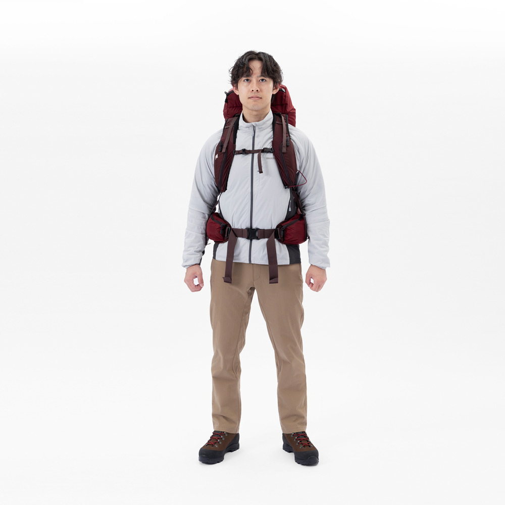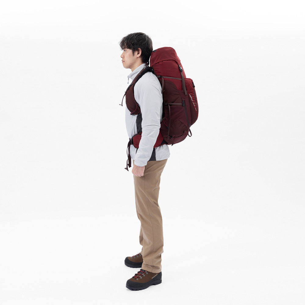 大小さまざまなポケットや本体下部へのアクセスジッパーを装備し、収納力に優れる中型パックです。ショルダーハーネスの取付位置を変えることで背面寸法を調節し、体格に合わせて簡単にフィッティングすることが可能です。日帰りのトレッキングや1泊2日の小屋泊まり登山など、幅広い用途で使用していただけます。専用パックカバー付き。