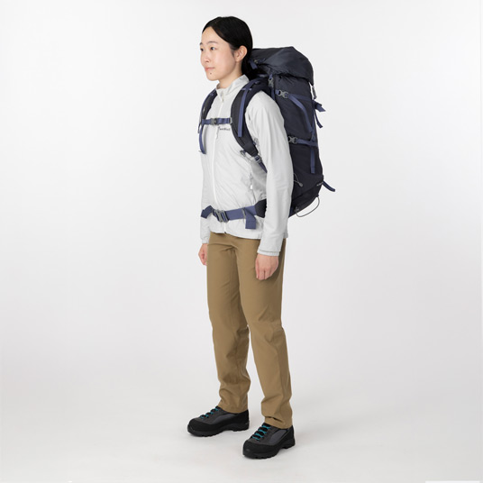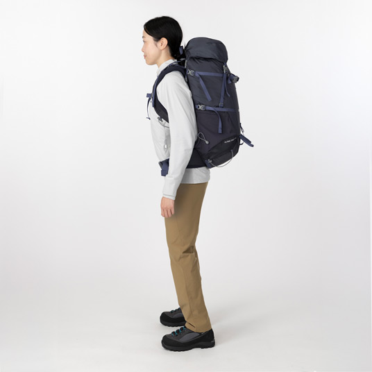 内側にソフト、外側にハードタイプのフォームを内蔵しています。脇・肩・背中へと包み込むように密着することでぶれを防ぎ荷重を分散。大容量を感じさせない絶妙な荷重バランスを実現しています。モデルによってスタビライザーテープでフィット感を調整できます。