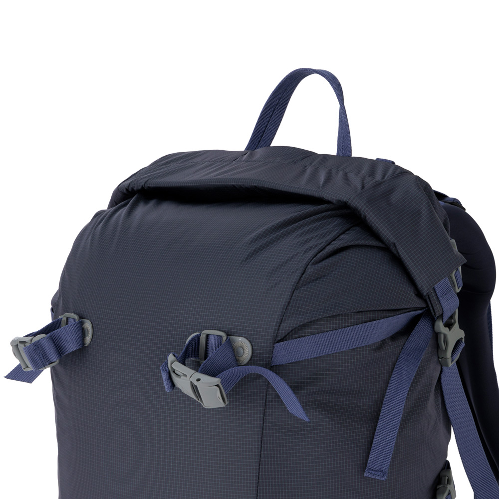 ロールアップシステムと専用のアクアバリアサックを備え、優れた操作性と防水性を実現した女性モデルのバックパックです。スリムなシルエットながらも、高い安定性を実現したモデルです。狭い山道でも邪魔になりにくく、スムーズな歩行が可能。取り外してショルダーポーチとしても使用可能なトップリッドが付属します。