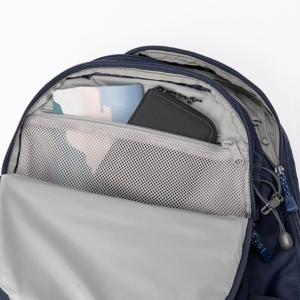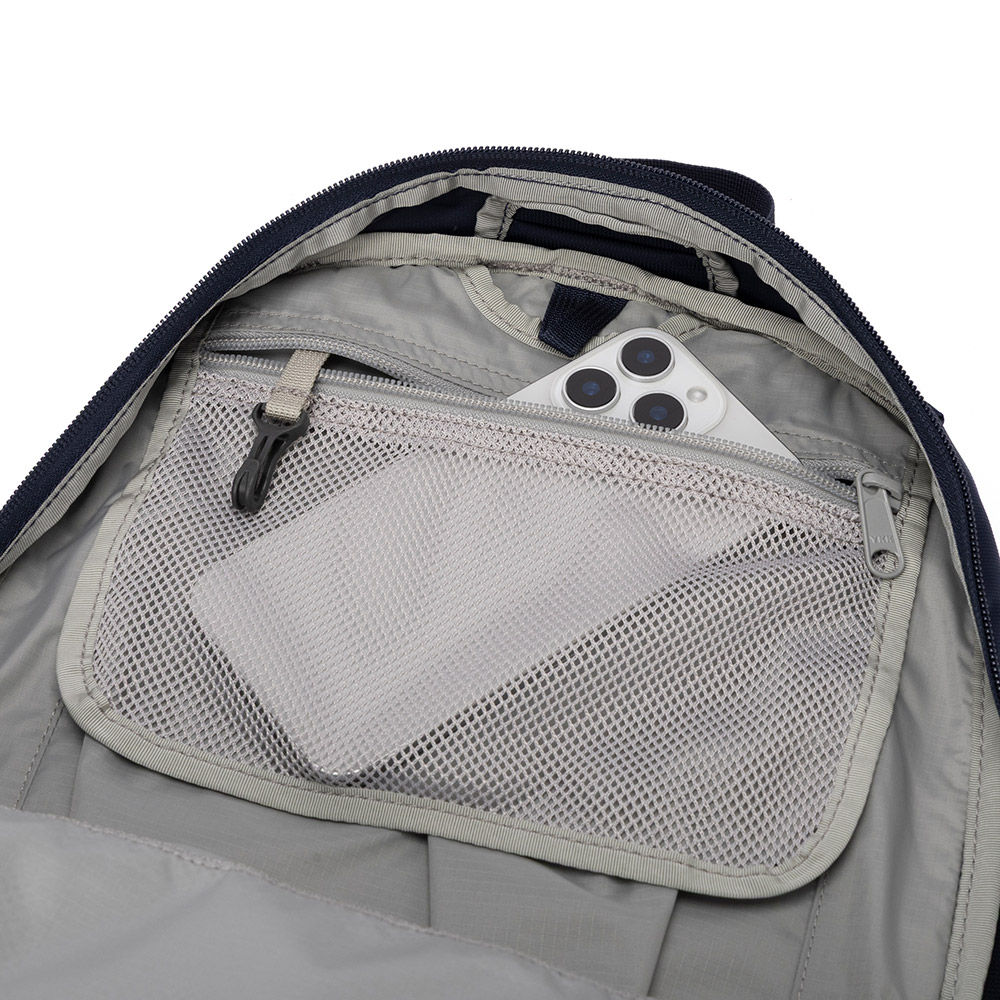 多彩な機能を備えた小型バックパックです。メイン気室とフロント気室の2気室の構成で、行動中にアクセスしやすいショルダーポケットやウエストポケットなどを備えています。専用パックカバー付き。アイヌ語で山を意味する「Nupuri(ヌプリ)」が名前の由来です。