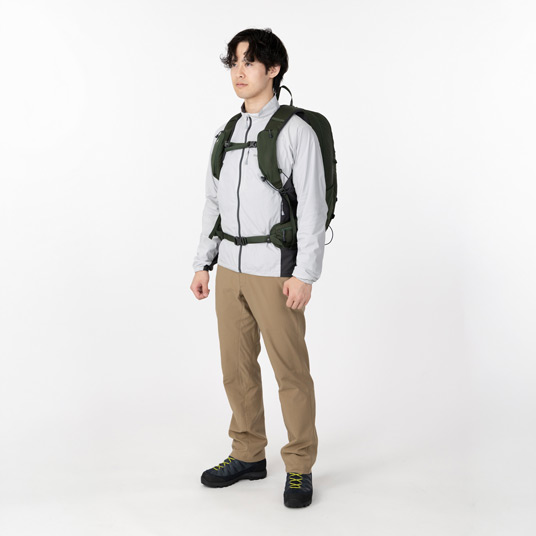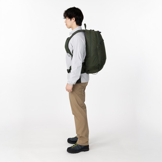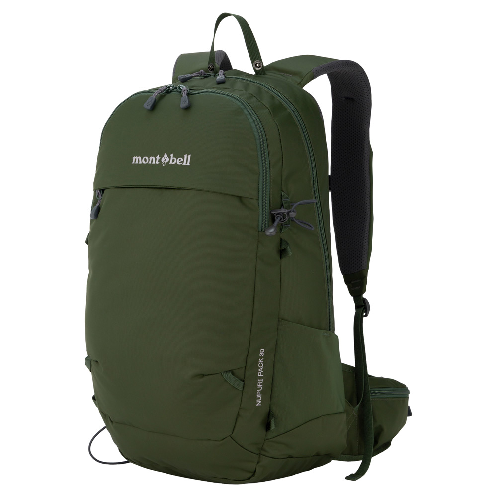 多彩な機能を備えた中型バックパックです。メイン気室とフロント気室の2気室の構成で、行動中にアクセスしやすいショルダーポケットやウエストポケットなどを備えています。専用パックカバー付き。アイヌ語で山を意味する「Nupuri(ヌプリ)」が名前の由来です。