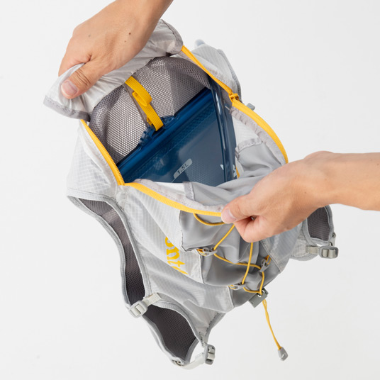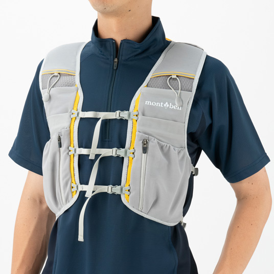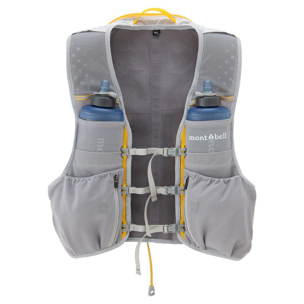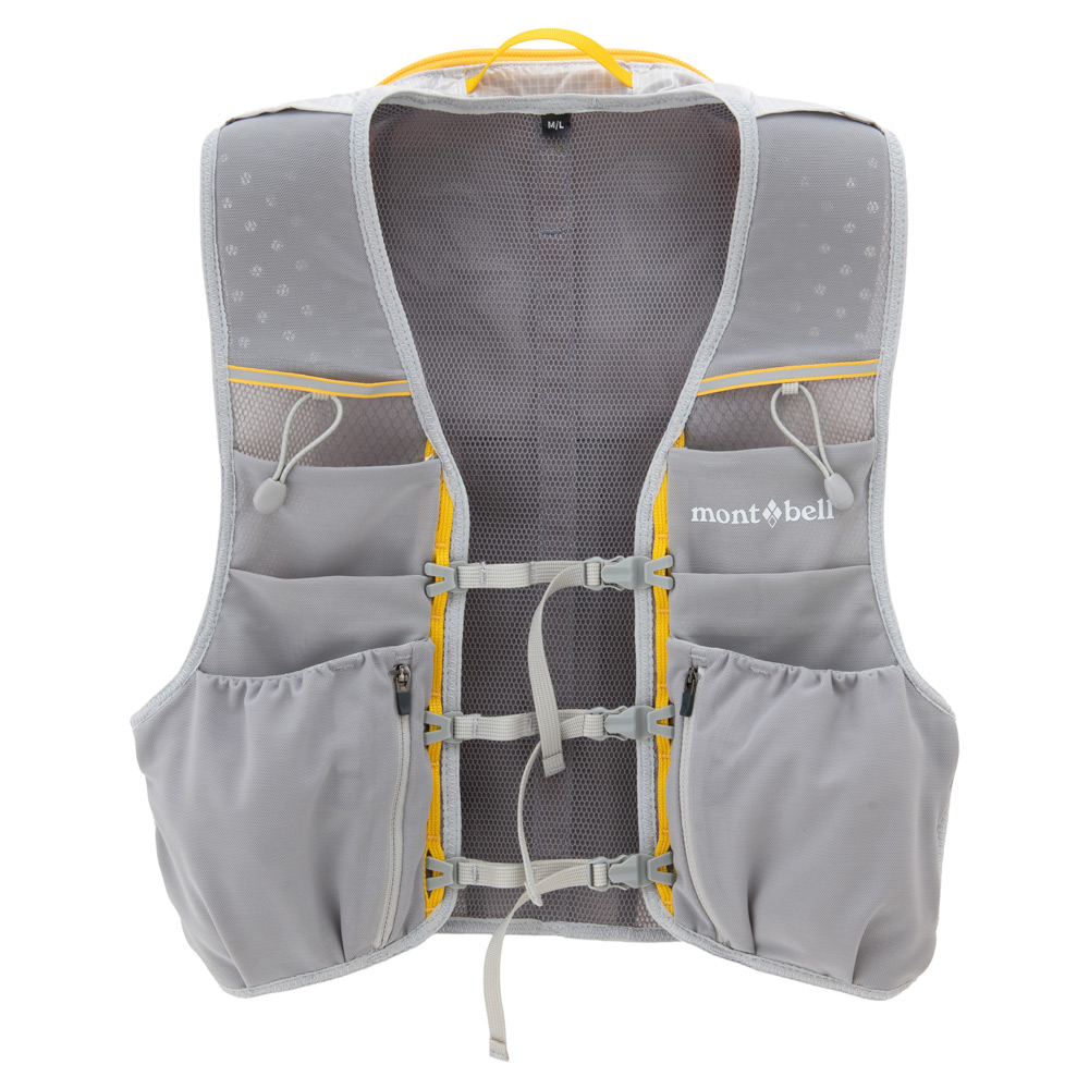 ストレッチ性に優れるメッシュ素材の軽量ベストです。ボトルポケットや行動食など取り出しやすい開口の広いポケット、ジッパー付きポケットなど機能的で多彩なストレッチポケットを配置。背面側は防寒具など携行品を収納できるので、長めのトレイルランニングなどに適しています。2Lまでのトレールウォーターパックを装着可能。S/M、M/Lの2サイズ展開。