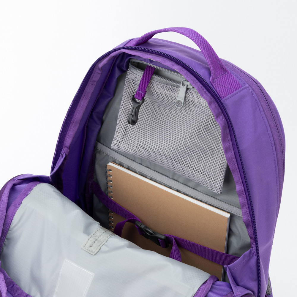 遠足やハイキングはもちろん、通学やお稽古事でも使いやすいデイパックです。大きめの反射テープが付き、荷物量に合わせて容量を変えられます。オーガナイザーポケットや、テキストやファイルなどを固定できるベルト、防犯ブザー用フックなどさまざまな機能を備えています。