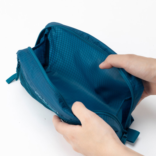 小物類を使い勝手よく収納できる仕分けポーチです。ジッパーが大きく開くので出し入れしやすく、開けた時に中の物がこぼれ落ちない仕様になっています。