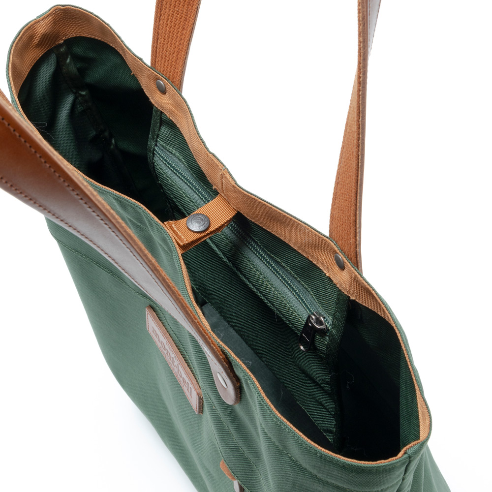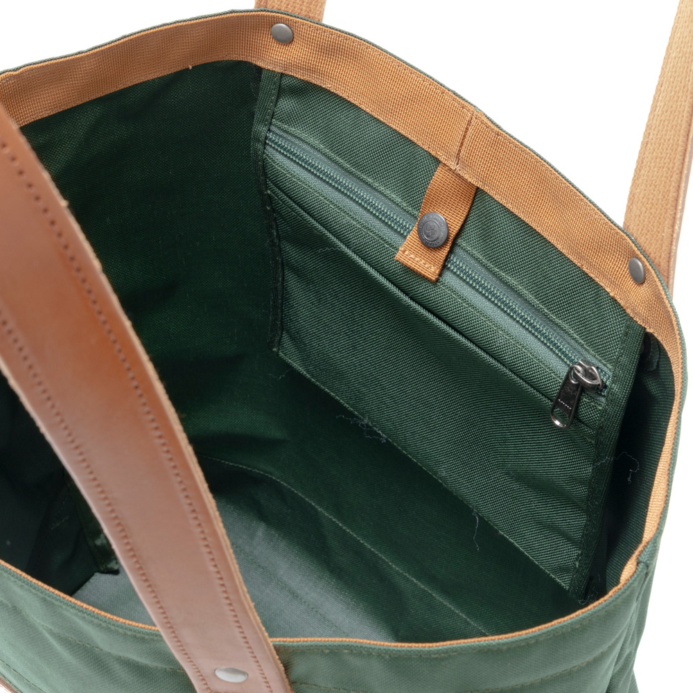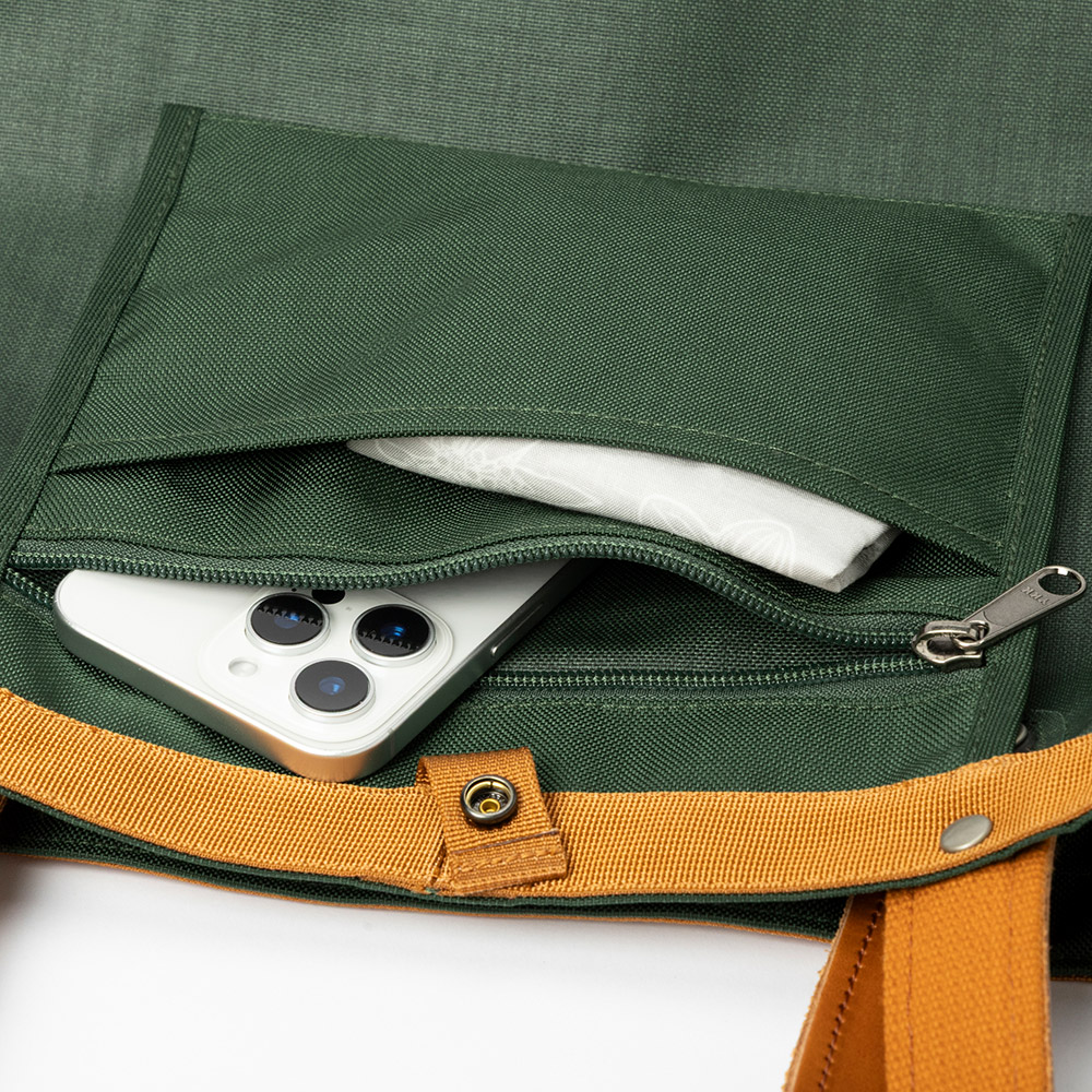 内部にジッパー付きの内ポケットが付いています。開口部はスナップボタンで閉じることができます。
