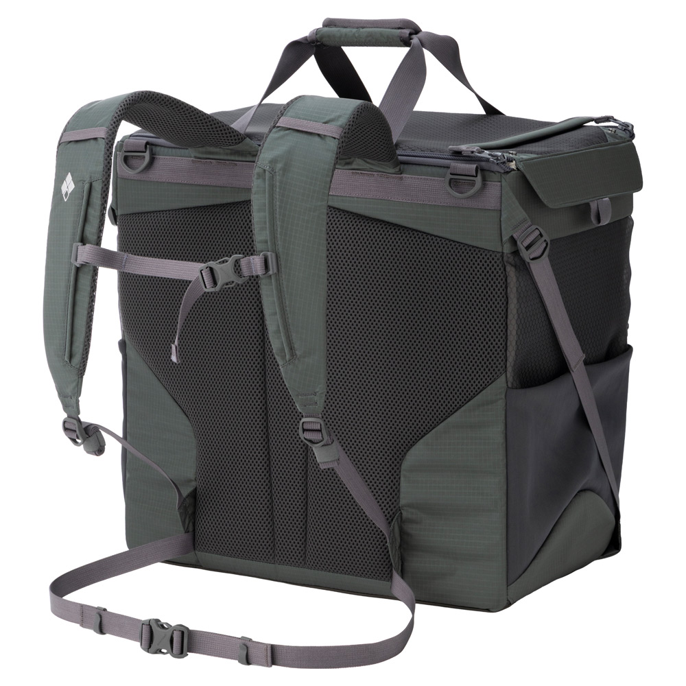 愛犬との旅行やハイキングに適したバックパックです。「背負う」「体の前で抱える」の2通りの使い方ができます。肩に掛けて使用する場合は別売のコンフォートショルダーストラップ(品番#1133193、#1133194)をご使用ください。底部に剛性の高いプレートを入れることで、安定性を高めています。犬を日差しから守るサンシェイドが付属。約9kgまでの犬に対応します。