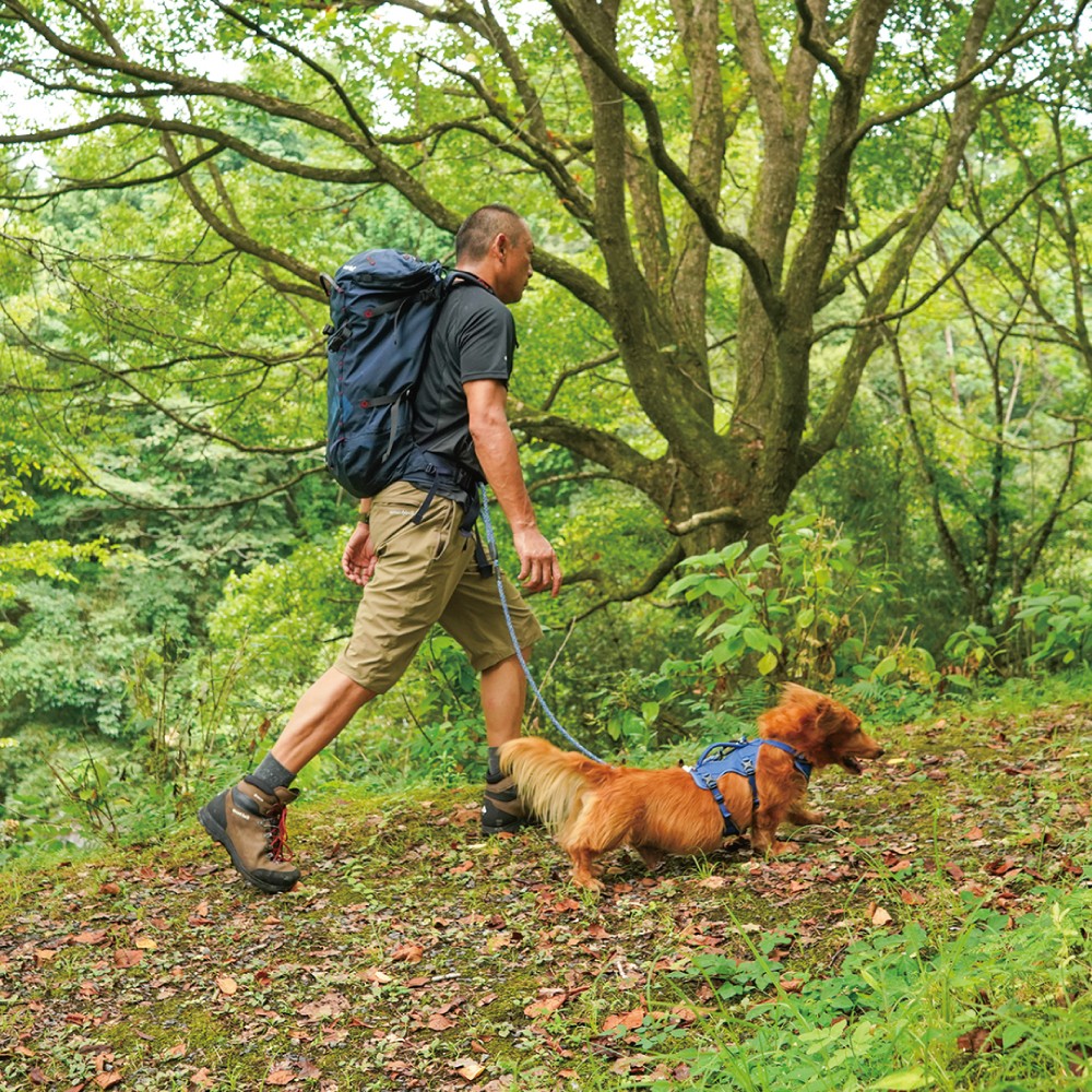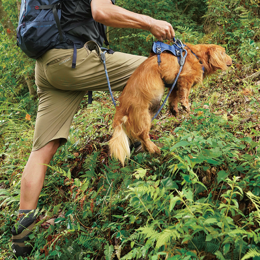 通気性に優れたメッシュ素材を使用したハーネスです。補助ハンドル付きで、岩場など段差のある場所で愛犬を持ち上げてサポートすることができます。体を包み込むようなデザインで、背中側にはEVAフォームを入れ、持ち上げる際にしっかり支え、犬への負担を最小限に抑えています。