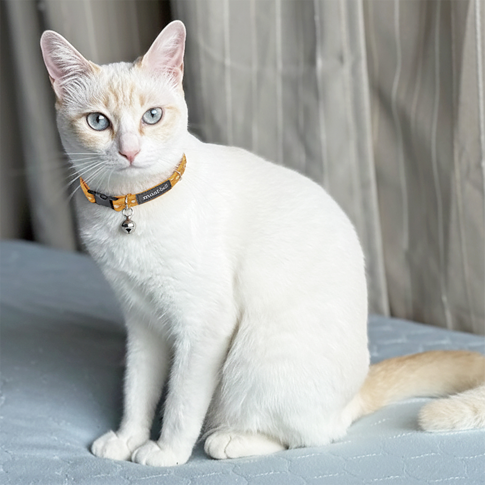 猫用のシンプルな鈴付きの首輪です。ワンタッチで着脱できるバックルを備え、サイズ調節も容易に行えます。強い負荷が掛かった際には外れるバックルを使用しています。