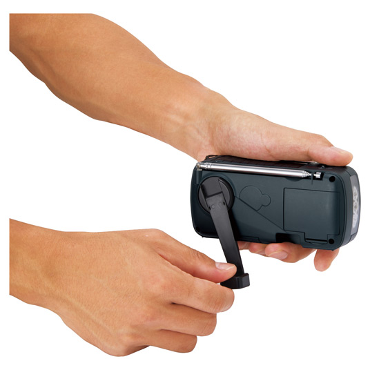 災害時やアウトドアでマルチに活躍するハンドチャージ充電ラジオです。ラジオはFM/AMに加え、ワイドFMと短波放送が受信可能。LEDライトやアラーム機能を備え、緊急時には外部バッテリーとしてモバイル機器への充電もできます。内蔵のニッケル水素電池または単4形乾電池3本を電源とし、内蔵電池へはUSB端子に加え、手回しハンドルと付属ソーラーパネルからも充電可能。電力の供給がない状況でも使用できます。