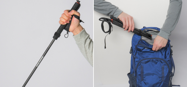 4本継ぎのため、収納時はデイパックにも収められるほどコンパクトに折りたたむことができます。