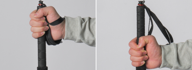 カーボンフォールディングポールはグリップ部が長いため、握り位置を変えることで、急な登りや下りなどさまざまな地形の状況に対応します。衝撃吸収に優れるEVAフォームグリップで快適に使用できます。