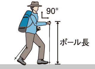 肘が約90度になる角度でポールを持った時の地面からの高さが目安になります。