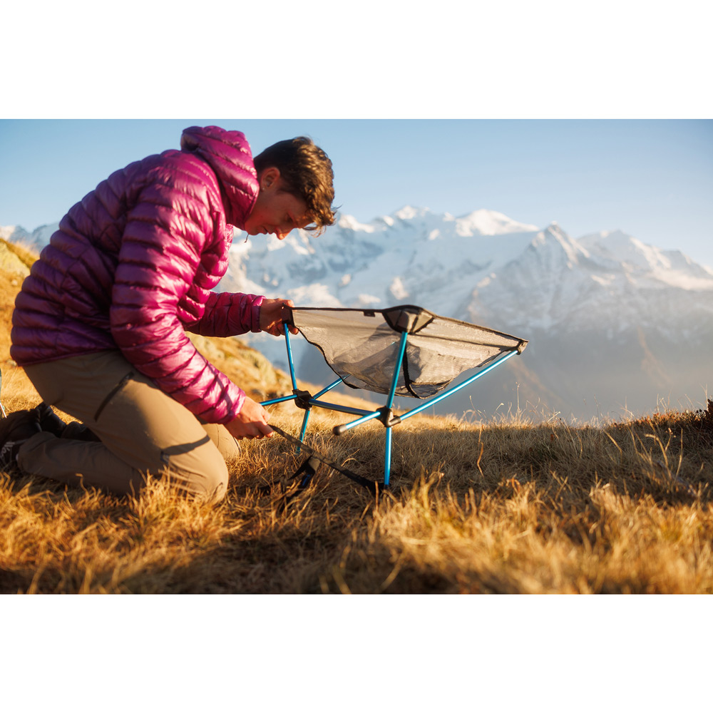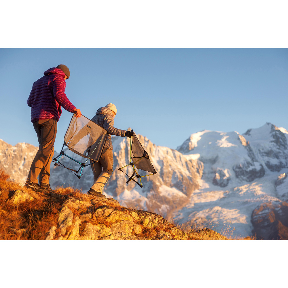 耐久性、座り心地の良さ、軽量コンパクト性を兼ね備えたヘリノックスのチェアシリーズの中で、圧倒的な軽さを誇るモデル。薄手ながら耐久性の高いポリエステル・リップストップ生地と強度に優れたフレームにより超軽量でありながら抜群の安定感と快適さを備えています。付属するグラウンドストラップは、脚先に取り付けることで、荷重が分散してチェア全体の安定感が増すと同時に、地面への接触面が広くなることで柔らかい地面にも沈みにくくなります。