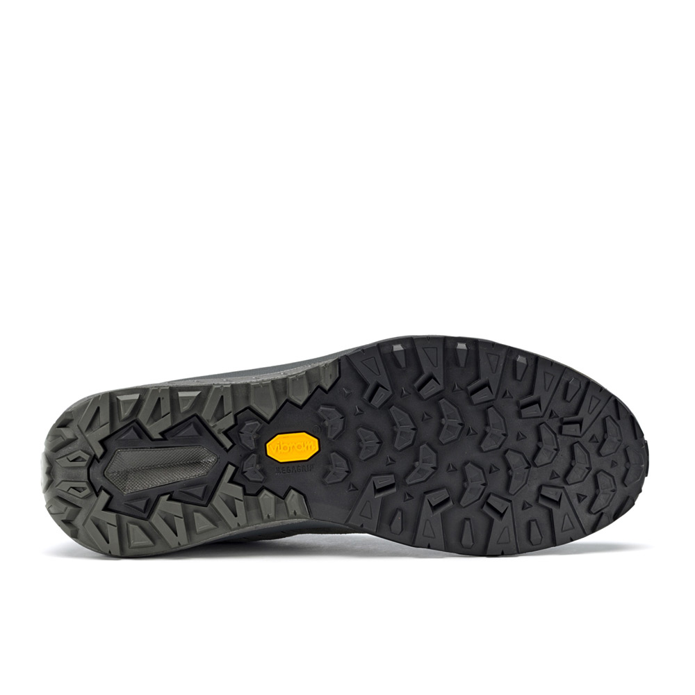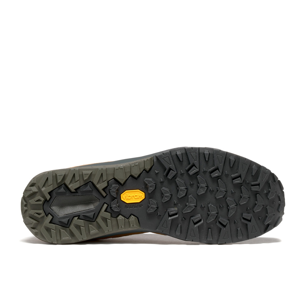 濡れた路面で高いグリップ力を発揮するソールです。このメガグリップコンパウンドを元にアゾロ社とヴィブラム社で共同開発したアウトソールは、メガグリップのグリップ力を最大限に発揮すると同時に、泥はけに優れたパターンを採用しています。