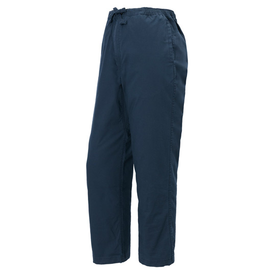 日本古来の「作務衣」に、モンベル独自のアイデアと技術を投入して作り上げた機能的ウエアです。ポリエステルの芯糸の周りをコットンで包み込んだ芯鞘構造糸のコアスパンを仕様。洗濯しても乾きが早く、形状安定性に優れるためシワができにくくなっています。作業着やリラックスウエアとして幅広く活躍します。適度なストレッチ性を備えた快適な着心地です。製品加工後に生地に洗いをかけて自然な風合いに仕上げています。