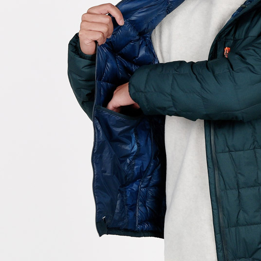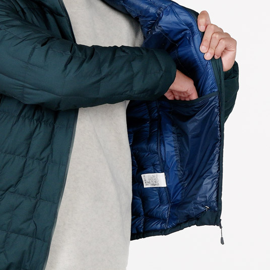必要最小限の縫い目で中綿の片寄りを防ぎ、熱の放出を抑える独自のデザイン。コールドスポットとなる縫い目を従来より大幅に減らし、保温効率を高めながら、軽量化にも寄与しています。
