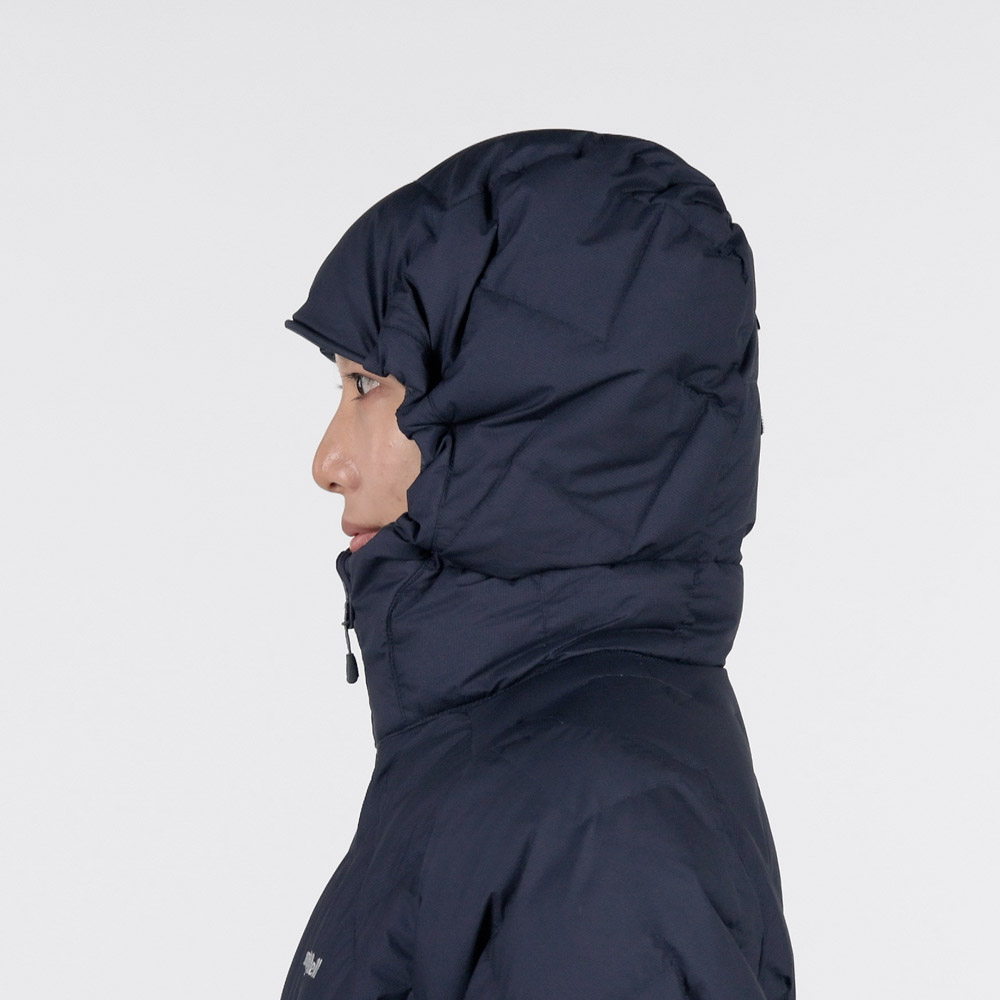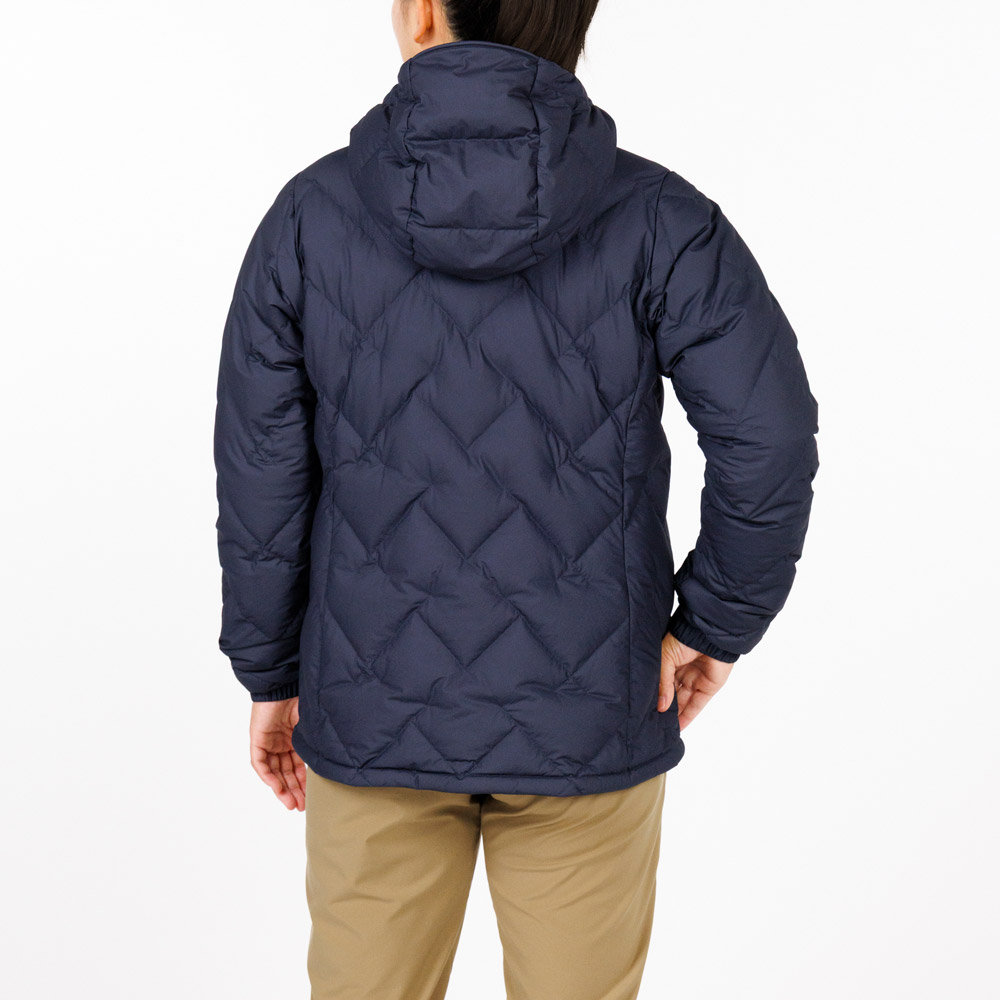 【特長】独自のキルティングパターン / ダウンプルーフ加工 / シングルキルト構造 / デュアルアクスルフード / ジッパーがあごに当たらない仕様 / アクアテクト®ジッパー / アルパインカフ / リードインコード・システム / スタッフバッグ付き