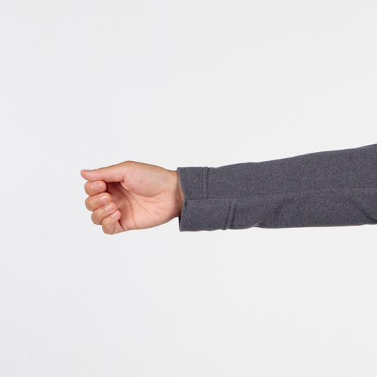 袖口の縫い目を斜め(スパイラル状)にすることでよく伸び、肌あたりの悪さや不快な締め付け感のない快適な着心地を実現しています。