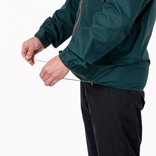 【特長】K-Mono CUT / 運動性を高める独自のパターン / スムースピットジップ / スマートソーイング / ネームタグ付き / トライアクスルフード / ロールアップフード / アクアテクト®ジッパー / アルパインカフ / 縫い目を減らし、保水しにくい接着加工(袖口) / 裾の調節機能 / スタッフバッグ付き