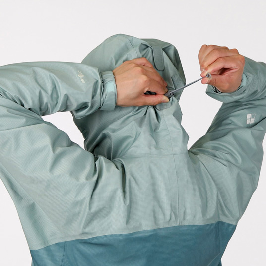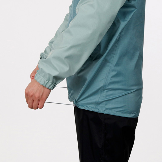 【特長】トライアクスルフード / ロールアップフード / アクアテクト®ジッパー(フロント) / はっ水ジッパー(ポケット) / 運動性を高める独自のパターン / アルパインカフ / 裾の調節機能 / ネームタグ付き / スタッフバッグ付き